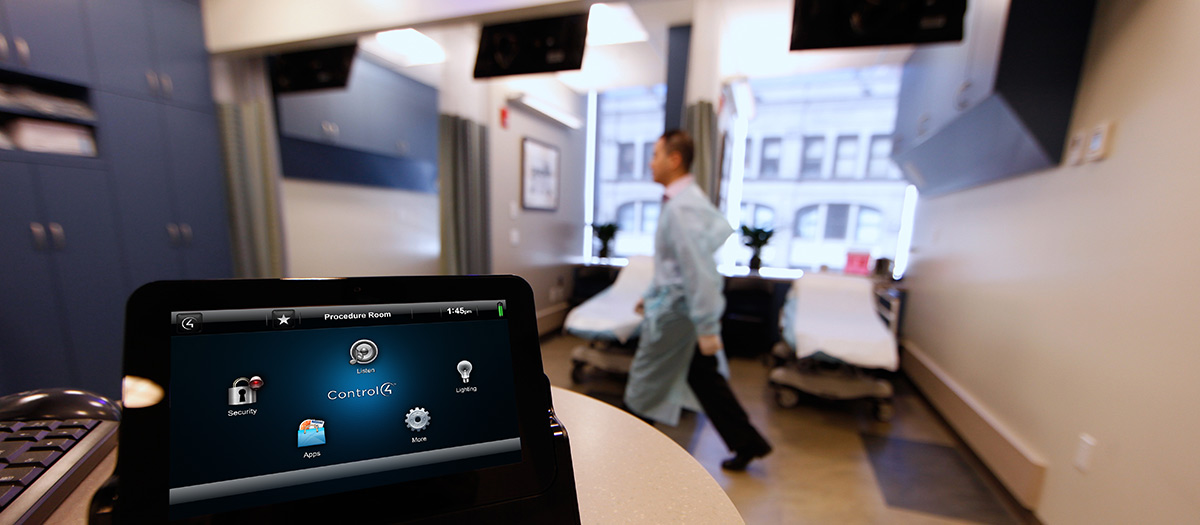 Automate technology in a medical or dental office to save time, create a stress free environment for staff, and enhance patient experience in waiting rooms, procedure and recovery rooms. Increase comfort and reduce energy costs with smart control of lighting, motorized shades, and climate. Enjoy one touch control to adjust lights to a preset based on each procedural requirement. Delight patients with simple control of entertainment during recovery and maintain a soothing atmosphere with music and video easily delivered to waiting areas and bathrooms. Stay in touch with nurses and patients via intercom/paging systems. Create a state-of-the-art simulation lab, training environment, or telemedicine system. Receive security alerts and view cameras after hours from anywhere in the world.