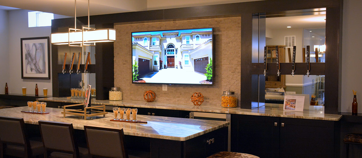Score big with a bar or game room to watch the big game, or games on one sleek TV or multiple TVs. Sports fans or consummate entertainers will cheer about how smart technology makes it easy to choose HD video from different sources such as cable, satellite, Apple TV, or Playstation® whether it’s in the room or on the other side of the house. Full control of entertainment, lights, shades, and temperature is at your fingertips from a sleek touch screen, remote, or smart device. Set the scene in your “man cave” with lights and music for a game of pool or foosball. If the doorbell rings while you’re enjoying a cocktail, check to see who’s at the door without having to move from your seat.